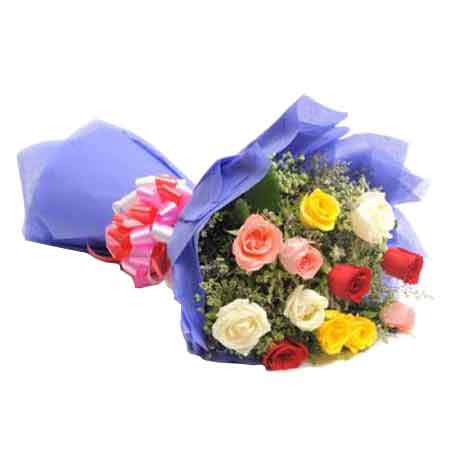 A mix of roses to share every emotion with the one you love. Let them know that they are the one with whom you would proudly share all shades of love. Let them get amazed with a Bunch of 12 mix roses in a blue paper packing with red n pink colors ribbon bow.