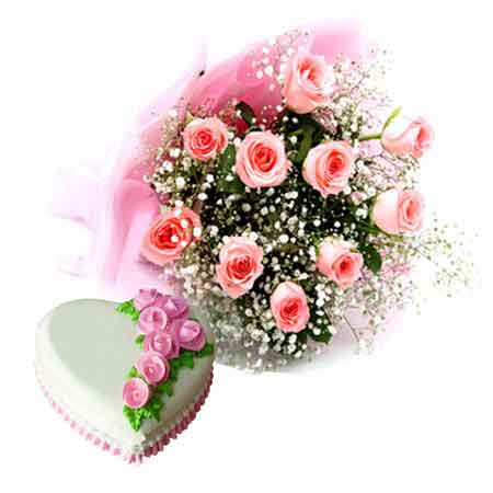 Pink is the color of elegance and grace that is loved my almost every woman. Send this amazing gift set that consists of 1 kg heart shape delicious and moist pineapple cake along with a beautiful bouquet of 10 pink roses to make her feel on top of the world. Perfect for all happy occasions!