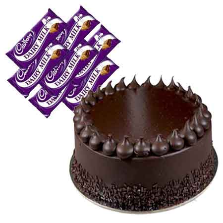A mind blowing gift hamper for all those who are crazy for chocolates. From kids to teens it is such a wonderful present that it will be appreciated by all. Gift them this very special gift pack of half kg delicious chocolate flavored truffle cake and a pack of seven Cadbury dairy milk chocolate of 20/- each.