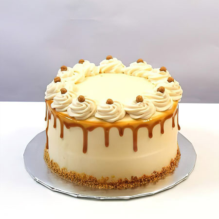 This is one of the best choices in cakes that will never fail to impress your guests. Send as gift to say Thanks or Congrats, this amazing Half kg Butter scotch cake is decorated with Vanilla sponge layered with butterscotch cream and topped with nougat. Order for a birthday, anniversary or any other occasion online!