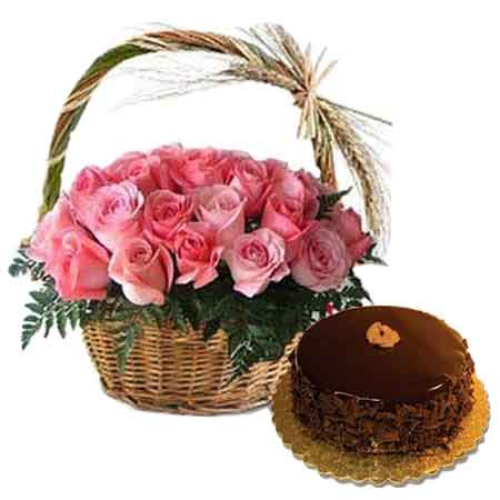 Love, affection, sympathy, respect or care every emotion can be best expressed with a wonderful gift and beautiful flowers. Order and send online this wonderful gift of combo of 20 beautiful pink roses arranged nicely in a cane handle basket and a mouth melting, delicious Half kg chocolate truffle cake.