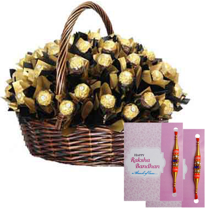 - Chocolate - 48 pieces ferrero rocher round basket arrangement.
