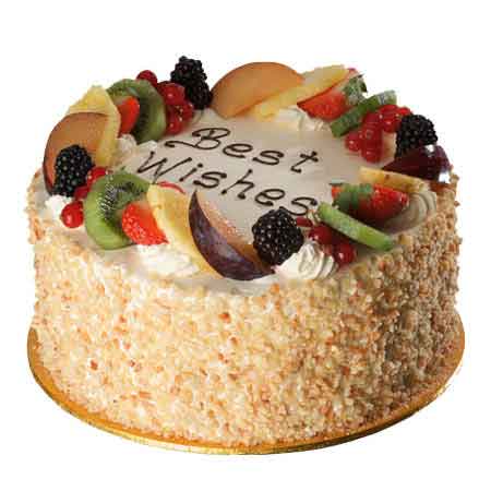 Enjoy this appealing one kg cake loaded with best of seasonal fruits, fresh cream, thick and feathery sponge with fruity toppings. Sides covered with crispy butterscotch crumbs and its attractive look together make it so happening that anyone would love to have it.
