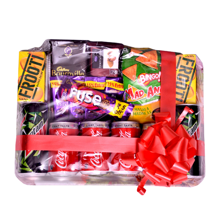 4 PCS COCA COLA CANE 25/-EACH,TWO DEW CANE 25/-EACH,2 PCS FRUITY 10/-, ONE BINGO MAD ANGLE,ONE FUSE 30/-,4 PCS DAIRY MILK CHOCOLATE 10/-EACH,ONE