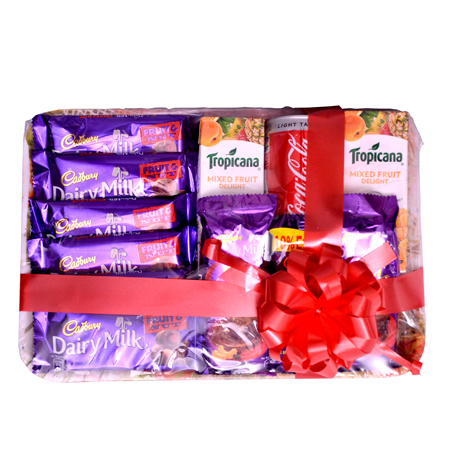 6 PCS FRUITS N NUTS CHOCOLATE, 2 PCS SILK ,2PCS TOPICANA 20/-EACH,ONE DAIRY MILK CHOCOLATE 20/-,ONE COCA COLA 25/-