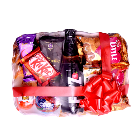 ONE BOURNVILEY CHOCOLATE 99/-, 2 PCS LITTLE HEART 10/-,ONE APPY FIZZ 30/-, ONE TROPICANA 20/-, ONE KITKAT 25/-,ONE SILK 70/-,ONE GEMS 40/-KINDER JOY 40/-,