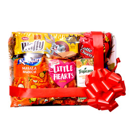 ONE WAFFER, ONE KURKURE, ONE LITTLE HEART, ONE TROPICANA, TWO LOTTE CHOCO PIE.