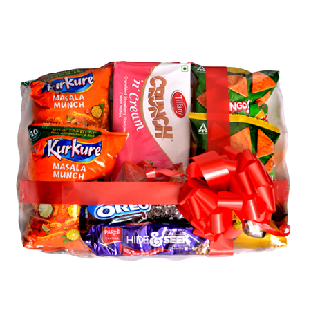 ONE TIFFINY CRUNCH 75/-, ONE OREO BISCUITS 30/-,TWO BINGO MAD ANGLE 10/-,ONE HIDE & SIKE 30/-,TWO KURKURE 10/-EACH.