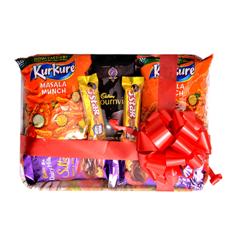 TWO KURKURE, TWO FIVE STAR CHOCOLATE, ONE BOURNVILLEY CHOCOLATE. TWO SILK.