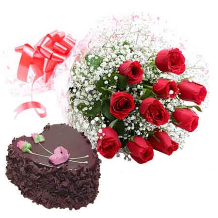 Let the special person in your life know how special they are to you and convey your intimate feelings to them with a wonderful gift. Surprise them with this very beautiful 10 red roses bunch arrangement and a thick and delicious 1 kg heart shape cake. Perfect for all grand and small celebrations!