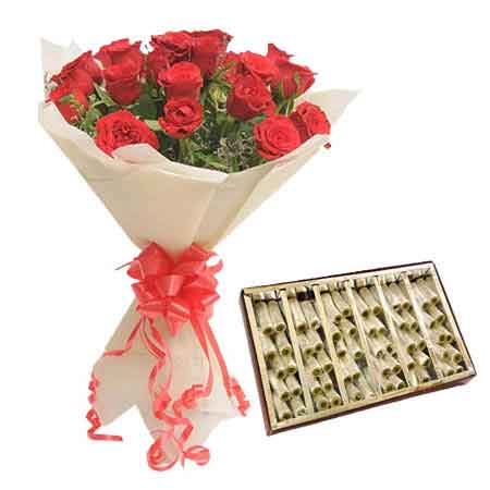As the name suggests this is a marvelous piece of gift that one would surely love to receive. Red roses can make us feel refreshed and happy. Gift this amazing combo of beautiful 15 red roses in a white tissue paper packing bunch with red ribbon bow and 1 kg kajupista roll.