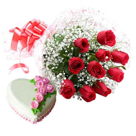 A gift should be so appealing that it should bring tears into the eyes and smile on the face of the receiver. Let them know that distances cannot separate them from you by sending them this wonderful gift of 10 beautiful red roses bunch along with delicious 1 kg pineapple cake carved in heart shape.