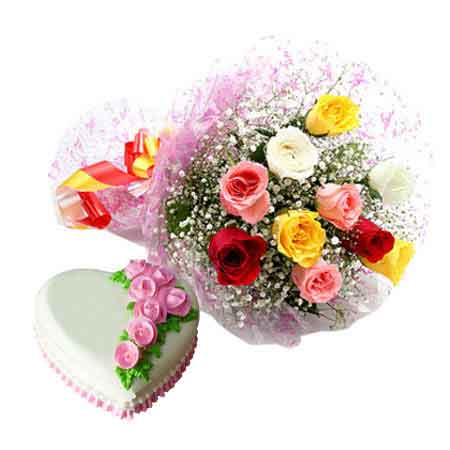 What can be more lovable than a bunch of beautiful roses! Gift your dear ones this graceful bouquet of ten mix roses and a super tasty one kg heart shape cake invanilla flavor that has moist sponge base and only best ingredients. It is enough to add some more grace to your celebration.