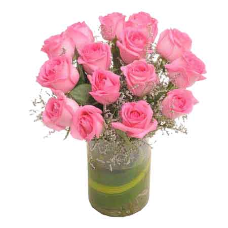 Believe it or not, this very beautiful bunch of roses has power to make up one’s mood and fill their heart with gentleness, love and admiration. This awesome looking bunch includes 15 pink roses in a glass vase arrangement to be gifted on any ceremony and festival like birthdays, anniversaries, love occasions etc.