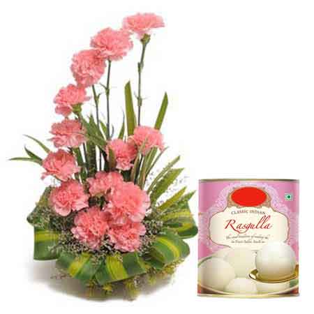 Offering a bunch of pink carnations to someone means offering them gratitude, admiration. It is a way to say ‘I will never forget you’. Gift your love ones this very amazing combo gift hamper of fresh and stunning 15 pink carnations in a basket and super delicious 1 kg branded tin rasgulla sweets.