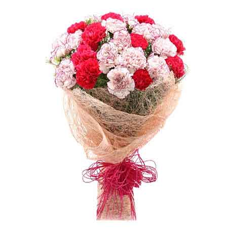 If you want to express the feelings of love, gratitude, sympathy without involving even a single word then just gift them this very amazing Bunch of fresh and beautiful 20 red carnations (10 red and 10 white) with green fillers in dual paper packing (red and white) and red ribbon bow.