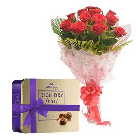 Make your relations as sweet as these mouth melting chocolates. A bunch of very beautiful 12 red roses and a box of tasty cadbury rich dry fruit collection Mrp 500/- is such a lovely gift hamper that it can be gifted on any small as well as grand occasion.