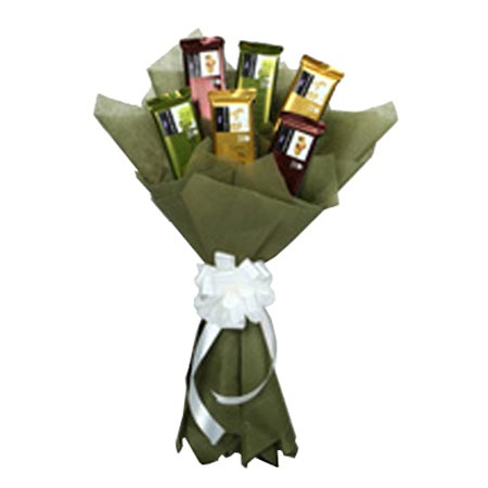 An extra ordinary set of gift that not only looks good but also tastes marvelous. Suitable to be gifted on all merry occasions like birthdays, valentine days, corporate parties, etc. this delighting treat includes heavenly tasting 6 temptation chocolate green paper packing with ribbon bow.